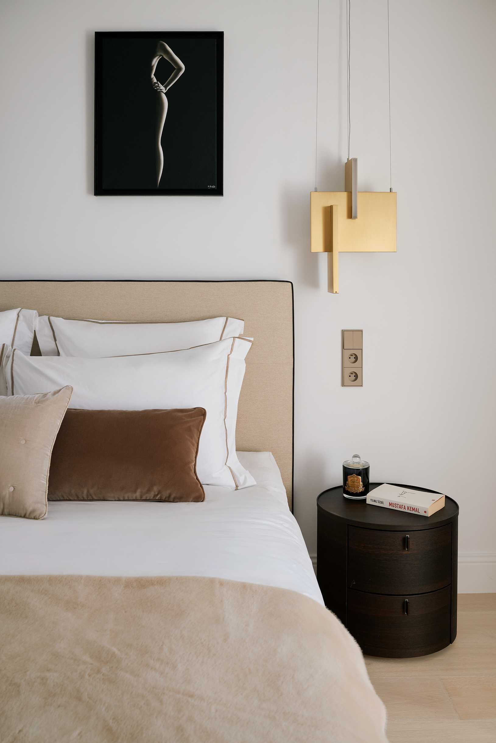 Une palette de teintes naturelles — beiges, blancs chauds et bois clair — a été choisie pour créer une ambiance douce et harmonieuse.