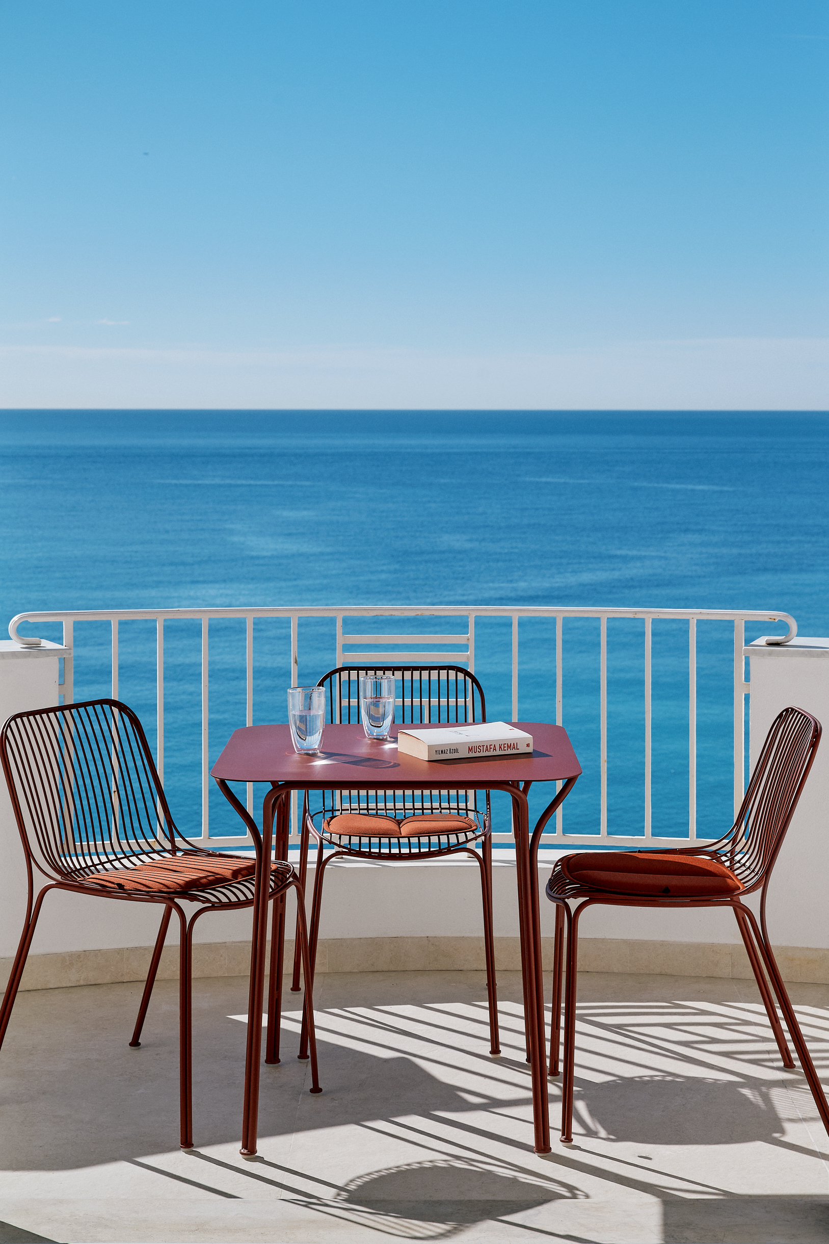 Elle offre un cadre privilégié pour profiter du paysage, avec un mobilier aux lignes contemporaines et des teintes plus vibrantes en écho à l’environnement méditerranéen.