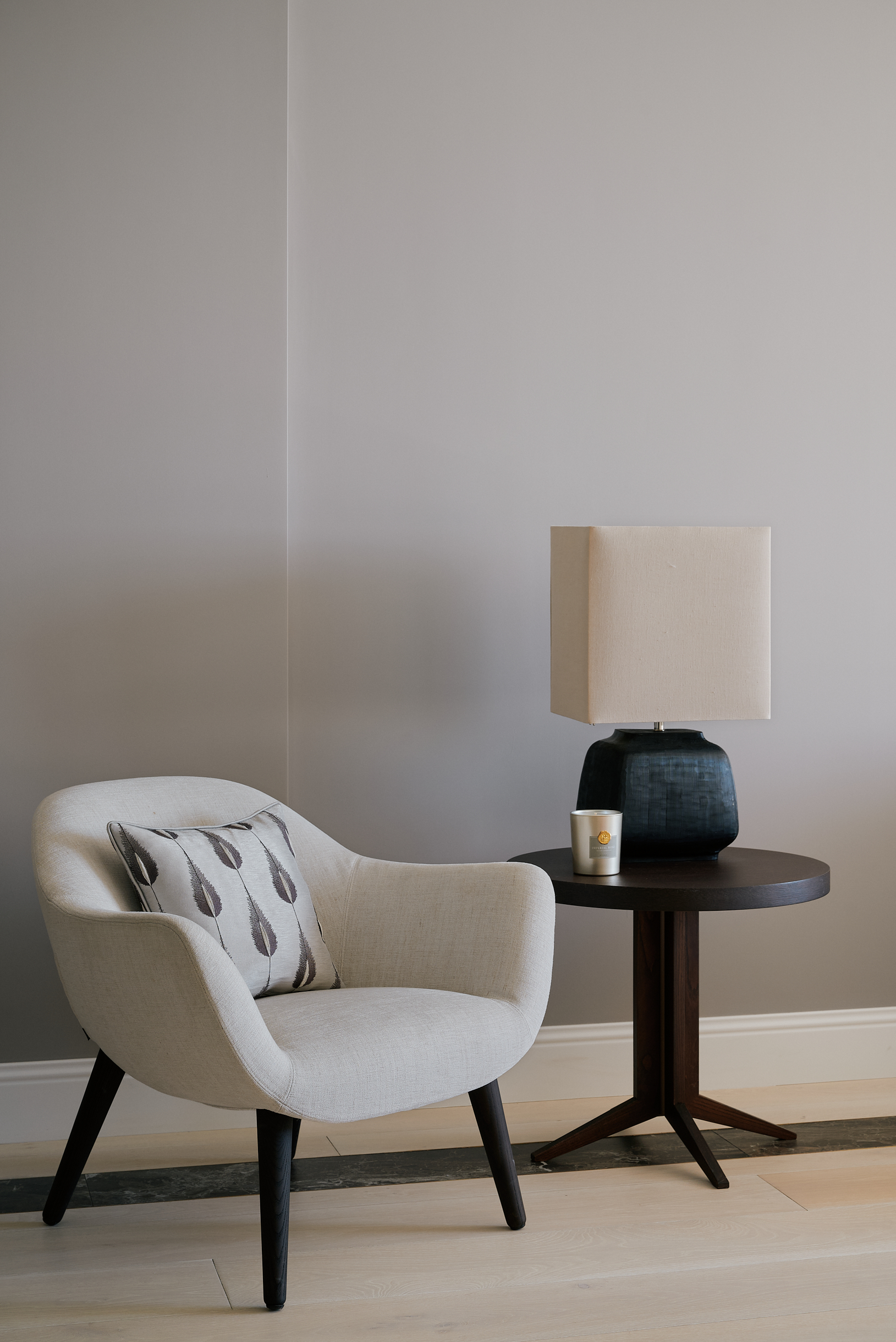Mobilya, aydınlatma ve tüm bitiş detayları bütüncül bir tasarım anlayışıyla ele alınmıştır.